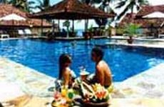 Ausstattung: Die beliebte Hotelanlage ist von einer exotischen Gartenanlage umgeben. Sie besteht aus Bungalows (3 Wohneinheiten je Bungalow) und einem dreistöckigen Haupthaus, welches direkt gegenüber der Open-Air-Rezeption liegt (einige Zimmer im Haupthaus sind rollstuhlgerecht). Zwei elegante Swimmingpools mit Kinderbecken, zwei Whirlpools sowie eine Sonnenterrasse (Badetücher und Liegen am Pool inklusive), eine Poolbar, eine Bar und ein Spa sorgen für entspannende Stunden. Am Pool werden traditionelle Massagen angeboten. Offenes Restaurant (Speisekarte auf deutsch) mit europäischen, indonesischen und chinesischen Gerichten sowie mit wechselnden Abendbuffets und eine Pizzeria runden das Angebot ab. Gelegentliches Unterhaltungsprogramm tagsüber und abends. Zu dem Schwesterhotel Candi Beach Cottage besteht ein täglicher Hotelbusservice (inklusive). Kreditkarten: AX, MC, VI, DC. Zimmer: Die 217 im Haupthaus befindlichen Superior-Zimmer sind freundlich eingerichtet und haben Bad/Dusche, WC, Telefon, Föhn, Sat.-TV (Deutsche Welle), Videos (teilweise in Deutsch), Musikanlage, Klimaanlage, Minibar, Wasserkocher für Tee oder Kaffee, Safe und Balkon oder Terrasse mit Sitzgelegenheiten. Bungalows: Sind gleicher Ausstattung, teilweise etwas größer und mit Terrasse, liegen näher zum Strand und Pool. Verpflegung: Amerikanisches Frühstücks-Buffet. All inklusive: Frühstück,