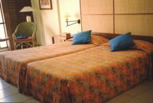 Die in schlichter Eleganz eingerichteten Zimmer bieten Bad/Dusche, WC, Telefon, Sat.-TV., Klimaanlage, Minibar, Föhn, Safe, Wasserkocher für Kaffee und Tee und einen kleinen Balkon. Die Garten-Villen